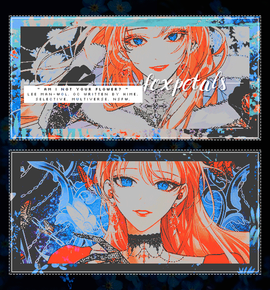 these powers are mostly related to the moon and are stronger when there's a full moon.𝒊𝒊)⠀she is able to use petals or butterflies to track/find/follow people; however if her petal/butterfly gets destroyed, she will get hurt — eg, small scratch / bruise / burn in her hand.